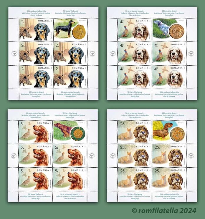 Emisiunea filatelică destinată Centenarului a abordat o temă îndrăgită de colecționari și de marele public: Câini de vânătoare.