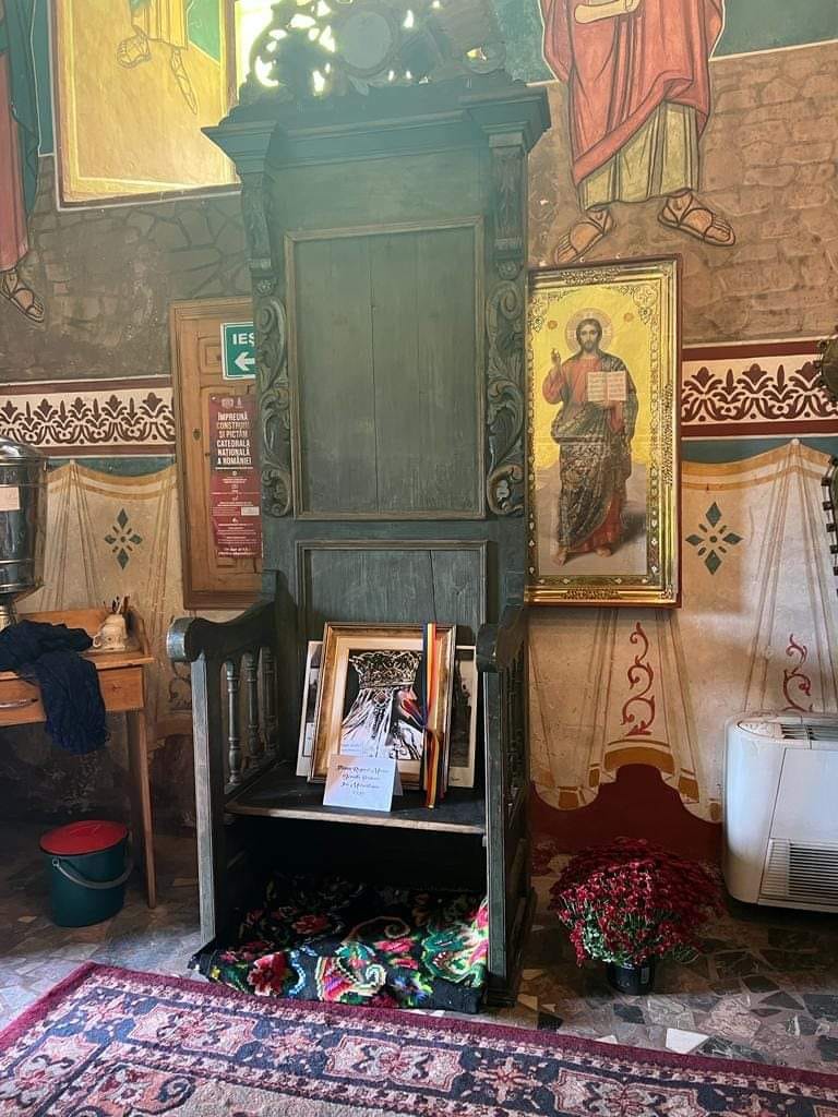 În timpul regimului comunist, familia mea a ascuns acest album într-un tub de brand (aruncător de proiectile, n. a.), sub podeaua casei, deoarece, dacă erai prins cu documente referitoare la monarhie, riscai să sfârșești în pușcărie. Albumul, pe care îl am scanat, conține 225 de pagini care cuprind încoronarea suveranilor la Alba Iulia, Familia Regală a României, invitații străini, instituțiile statului, eroii Primului Război Mondial, prefecții de județe, notarii și primarii din România întregită. Un asemenea exemplar mai există doar la Arhivele Statului din Alba Iulia. Totodată, prin bunăvoința preotului paroh Dan Miloiu, a fost coborâtă din turnul clopotniță al bisericii din incinta mănăstirii, strana regală comandată din contribuția proprie a bunicului meu, Ion Mărășteanu, în cinstea Reginei Maria, cu ocazia participării la slujba Învierii din 10 aprilie 1920, de la Mănăstirea Cașin, alături de generalul Balif, comandantul garnizoanei Bacău și a secretarului Episcopiei Romanului”.