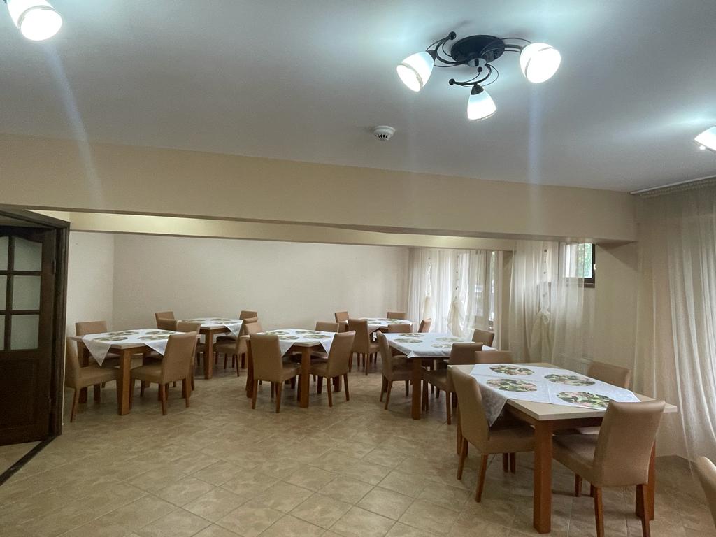 - Centrul are o bucătărie proprie impecabil dotată, ce oferă trei feluri și două gustări variate în fiecare zi și chiar meniuri personalizate pentru cei care trebuie să urmeze un regim alimentar special. Sala de mese seamănă mai degrabă cu o aufragerie de familie unde aromele bucatelor se îmbină cu atmosfera prietenească.
