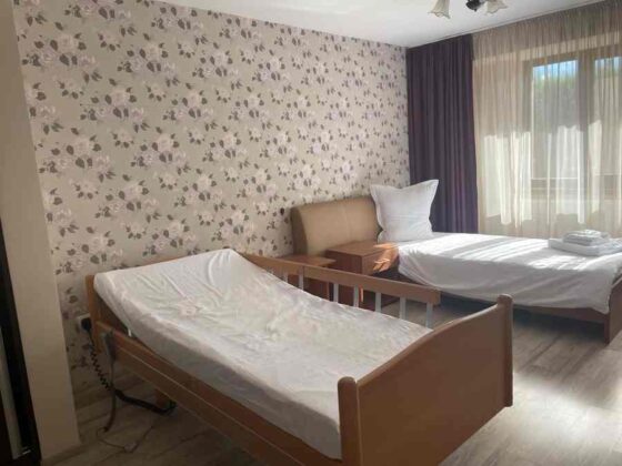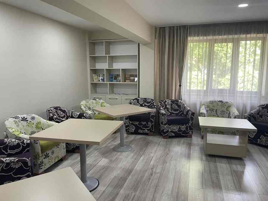 - Cele 16 camere spațioase oferă 32 de locuri într-un ambient ce îmbină fericit bunul-gust și confortul, cu mobilier ales cu grija de a ușura viața beneficiarilor. La fel și baia proprie din fiecare cameră, amenajată special pentru a menaja vârstnicii și a nu-i obliga la eforturi inutile.