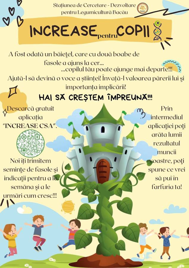 Băcăuanii se mai pot înscrie, gratuit, în cadrul unui interesant proiect inițiat de Stațiunea de Cercetare Dezvoltare Legumicolă Bacău, în colaborare cu Banca de Resurse Genetice Vegetale Suceava. Este vorba despre INCREASE – Intelligent Collections of Food Legumes Genetic Resources for European Agrofood Systems, un proiect cu participare internațională prin care se dorește promovarea hranei sănătoase și a biodiversității agricole. România participă la acest amplu proiect internațional, alături de alte 26 de entităţi de cercetare, universităţi, bănci de gene, societăţi, asociaţii şi organizaţii din 18 țări de pe patru continente. Astfel, sunt experimentate mai multe specii leguminoase alimentare, valoroase în întreg lanţul agroalimentar, cum ar fi fasolea comună, năutul, lintea și lupinul. Însă, importantă este mai ales deschiderea totală către societate, către oricine dorește să se implice, inclusiv simpli cultivatori sau pasionați de grădinărit.