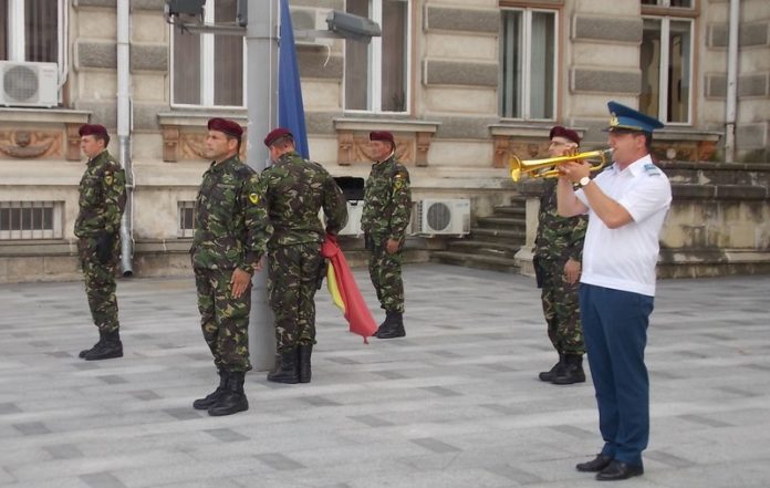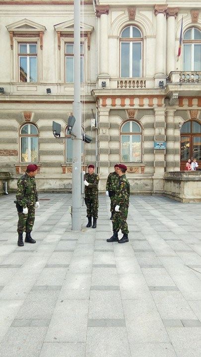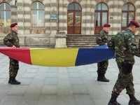 S-a dat “stingerea” pentru drapelul României. Asa se numeste ceremonialul militar de coborâre a drapelului de pe catargul din Piata Tricolorului.
