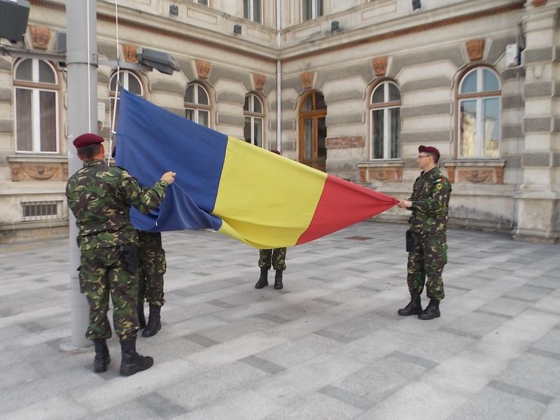 La ora 12.00, Garnizoana Bacau si autoritatile locale, vor organiza o ceremonie publica de arborare a Drapelului National al României, iar Muzica Militara va intona Imnul National al României.