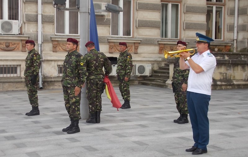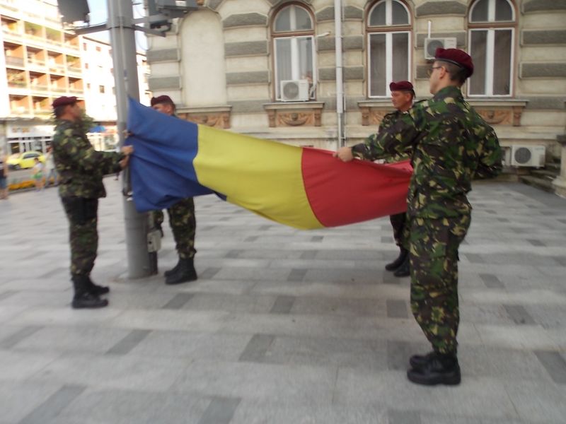 Pe 26 iunie, zi proclamata prin lege drept Ziua Drapelului National, va fi arborat un nou steag. Sâmbata seara, ceremonia de coborâre a tricolorului s-a facut in prezenta unui reprezentant al comenduirii Garnizoanei Bacau si a unui trompet.