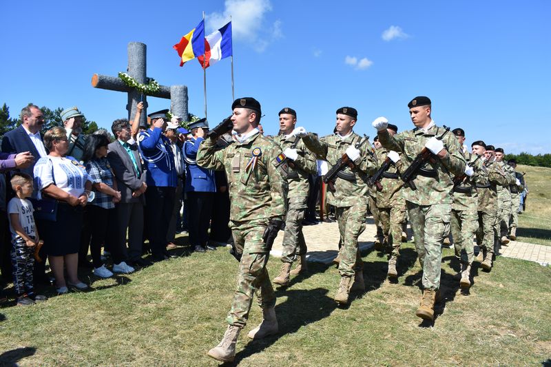 Garda de onoare a prezentat onorul generalului de brigadă Nicolae Tonu, locțiitorul Diviziei 4 Infanterie „Gemina”, reprezentantul Statului Major al Apărării, apoi au fost intonate imnurile naționale ale Franței și României. Iar serviciul religios dedicat evenimentului a fost oficiat de preoți ai Bisericii ortodoxe și ai Bisericii romano-catolice. Cu acest prilej au fost transmise și mesajul IPS Ioachim, arhiepiscopul Romanului și Bacăului și mesajul Bisericii romano-catolice.