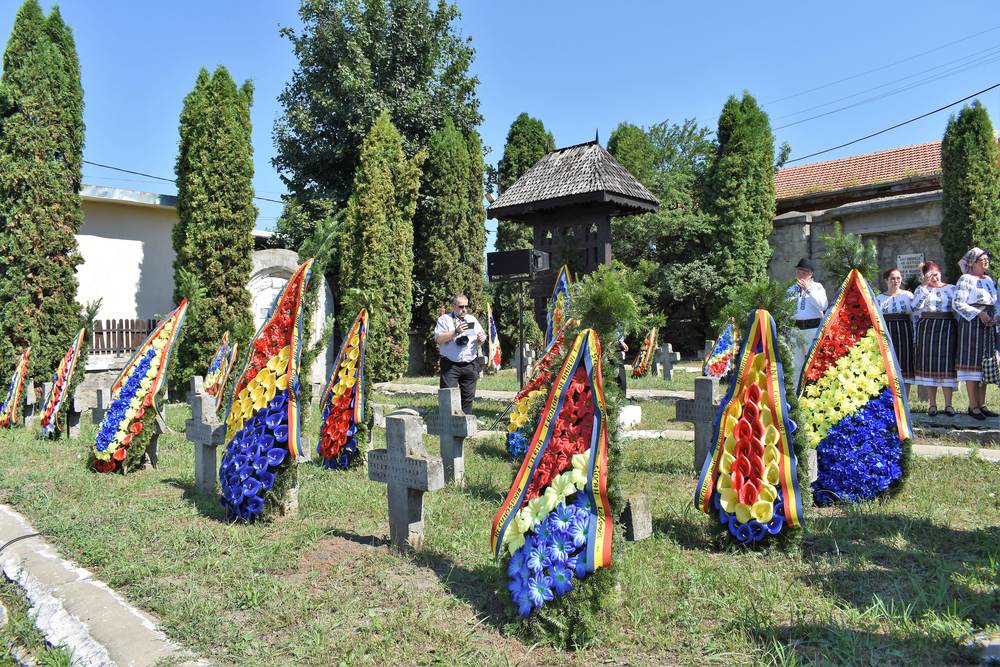 Ceremonialul a început cu intonarea Imnului de Stat al României și cu păstrarea unui moment de reculegere și a continuat cu depunerea, pe ritmurile Imnului Eroilor, a câte unei superbe coroane de flori la la Troița și la fiecare cruce din Cimitir.