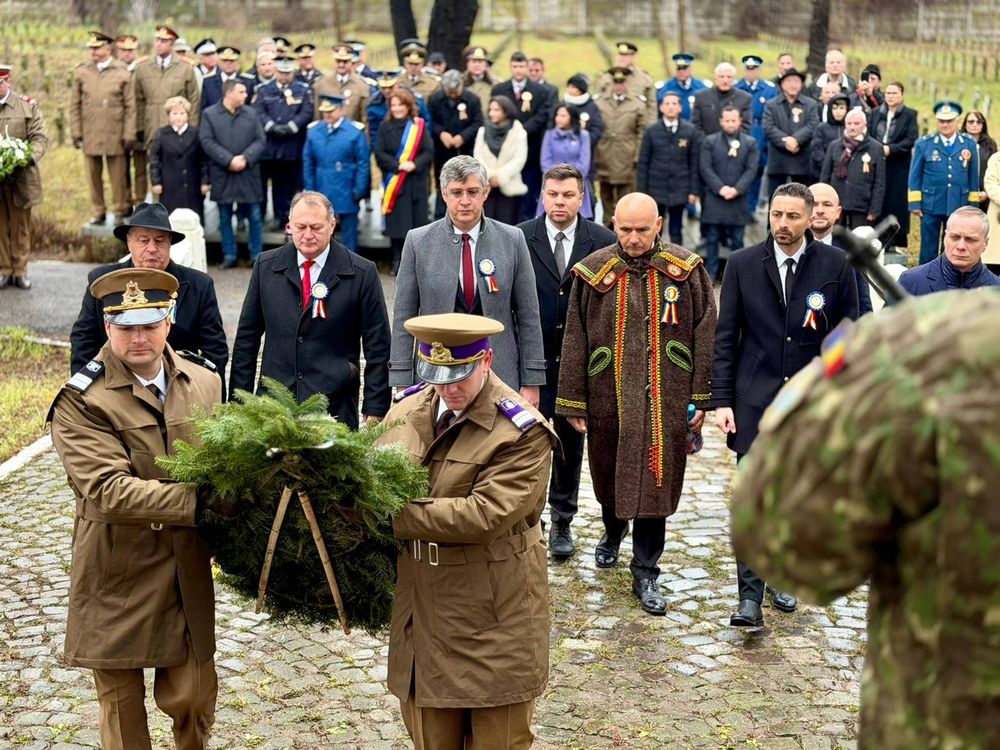 Dimineață, autorități locale, reprezentanți ai instituțiilor militare și civile, precum și numeroși cetățeni au depus coroane de flori la Cimitirul Eroilor de pe strada Constanței, în semn de omagiu pentru cei căzuți pe front.