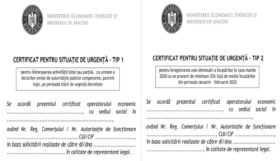 Certificate pentru situații de urgență pentru firmele afectate de COVID-19