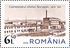 Timbrul cu valoarea nominală de 6,50 lei ilustrează Combinatul chimic Borzești în anii ’60, în perioada sa de început. Imaginea surprinde arhitectura industrială specifică epocii și simbolizează momentul fondator al industriei chimice moderne în România. Această etapă reprezintă începutul unei tradiții în cercetare, producție și inovație în chimie.