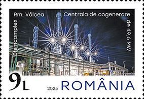 Timbrul cu valoarea nominală de 9 lei este dedicat Centralei de cogenerare de înaltă eficiență de la Râmnicu Vâlcea, cu o putere de 49,9 MW. Imaginea nocturnă a instalației sugerează modernitatea și investițiile recente realizate pe fosta platformă Oltchim pentru a asigura o producție energetică sustenabilă, în acord cu standardele europene de mediu și eficiență.
