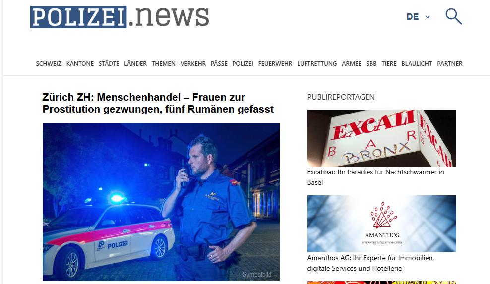 Poliția orașului Zürich și Poliția cantonală din Solothurn au efectuat mai multe percheziții domiciliare în cadrul unei ample operațiuni de combatere a traficului de persoane în scopul exploatării sexuale. În urma acestor acțiuni, cinci bărbați au fost arestați.
