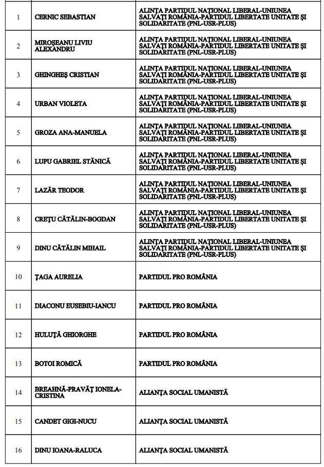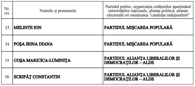 Nu este obligatoriu ca acestea să fie numele consilierilor deoarece unii pot renunța la mandat întrucât au candidat atât la consiliul local cât și la cel județean și nu pot fi, în același timp, în ambele consilii.