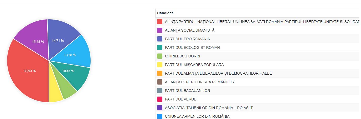 În municipiul Bacău, cele 23 de mandate au fost alocate astfel: