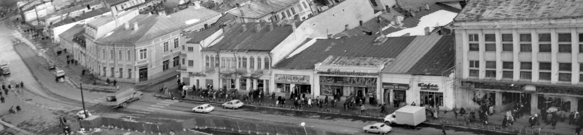 Bine că nu mai avem demonstrații, să pună jandarmii opreliști, cu grilaje mobile. Pe vremea la care mă refer nu existau decât mitinguri pentru dezarmare și pace. Balustradele, cu muchii în acolade blând rotunjite, au apărut odată cu demolările, protecție pentru pietoni. Nu le puteai nici sări, nici ocoli. Nu știu cum au fost gândite, dar aveau o blândă continuitate… care impunea respect. Mai ales că iluminatul stradal, suspendat, nu mai avea puncte de susținere de pe celălalt trotuar. Oazele de lumină de până atunci, atârnate peste mijlocul străzii, bine izolate electric, mai pâlpâiau doar pe alocuri, radiind a neputință. Semnal pentru începutul lipsei de lumină ce a debutat cu bezna anilor ’80, perpetuată apoi cu brio până în 1992.