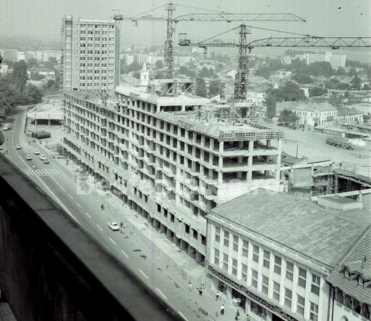 Grinzile arse au lăsat loc pentru viitorul magazin universal. Temelia s-a săpat manual. Pentru lucrul la fundație au fost aduși muncitori lipoveni. Erau considerați mari meșteri, cu talent și mână de om harnic. Nu s-au folosit excavatoare sau alte utilaje ca acum.
