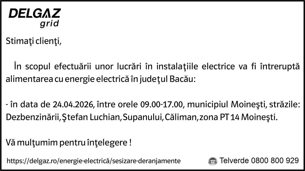La data de 13 februarie a.c., în jurul orei 09.00, polițiștii din cadrul Serviciului Rutier Bacău au fost sesizați cu privire la producerea unui eveniment rutier, cu victimă, pe DN 11, în afara localității Luizi Călugăra.
