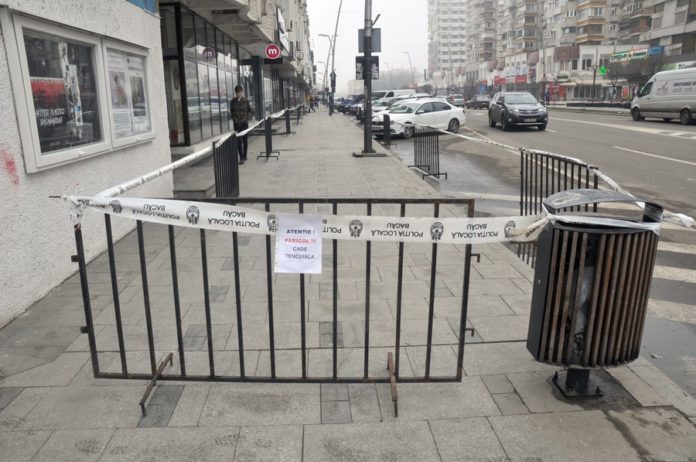 Poliția Locală Bacău a închis din nou trotuarul care mărginește spațiile comerciale aflate la parterul blocului nr. 12 de pe strada Nicolae Bălcescu.