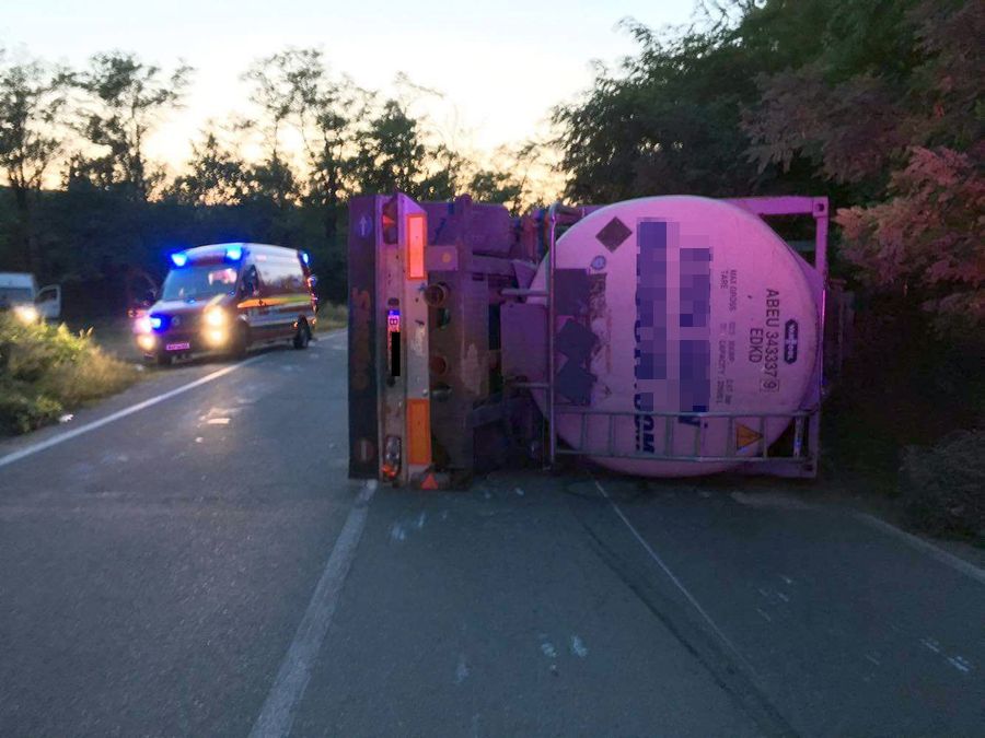 O cisterna, incarcata cu 12 tone de aditivi, s-a rasturnat, aseara, la Magura.