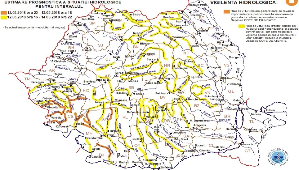 Avertizarea a fost făcută având în vedere situaţia hidrometeorologică actuală şi prognoza meteorologică pentru următoarele 48 de ore, ca urmare a precipitaţiilor lichide prognozate, cedării apei din stratul de zăpadă, evoluţiei formaţiunilor de gheaţă şi propagării lor.