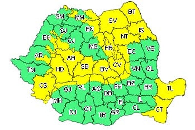 Administrația Națională de Meteorologie a emis o nouă atenționare Cod galben de burniță și ploaie, cu depunere de polei, pentru șase județe ale Moldovei, după cum urmează: