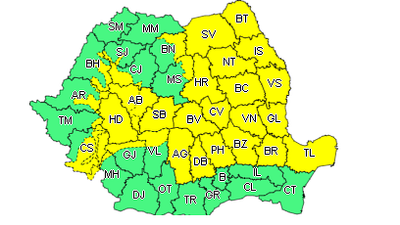 Administrația Națională de Meteorologie a actualizat avertizarea Cod galben de instabilitate atmosferică accentuată și cantități importante de apă, aceasta fiind prelungită până sâmbătă, 28 iulie, la ora 21.