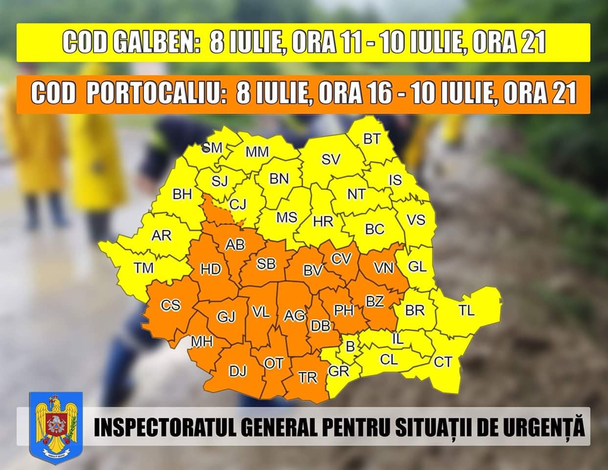 Potrivit Administrației Naționale de Meteorologie, în Oltenia, în vestul și nordul Munteniei, sudul și vestul Transilvaniei, precum și în jumătatea de sud a Banatului și în sud-vestul Moldovei vor fi intervale de timp în care va ploua abundent și se vor acumula cantități de apă de 40…50 l/mp și pe arii restrânse 70…80l/mp.