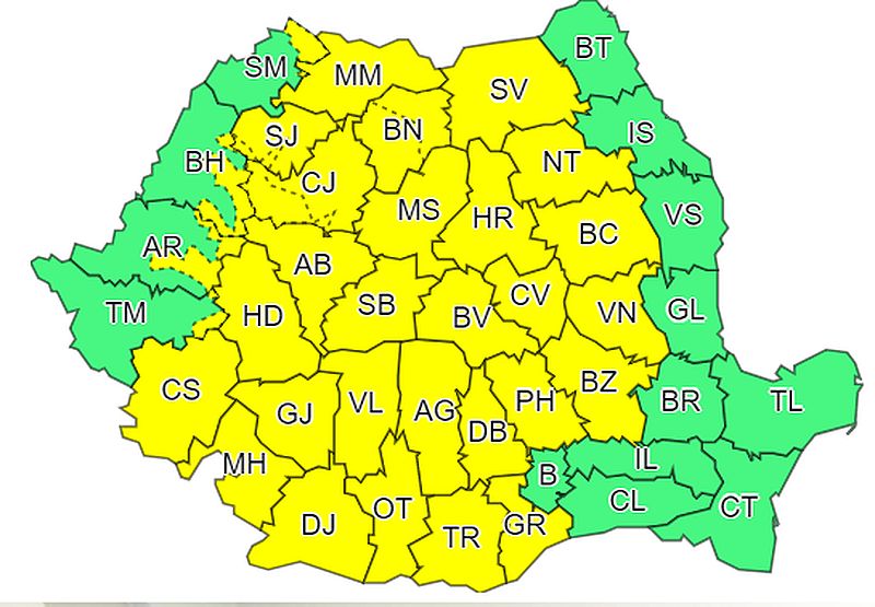 În funcţie de evoluţia şi intensitatea fenomenelor meteorologice, Administraţia Naţională de Meteorologie anunță că va actualiza avertizarea meteorologică.