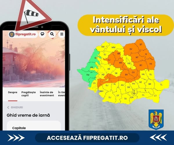 În Oltenia, sudul Banatului și local în Muntenia, vântul va avea intensificări puternice, accentuând senzația de frig și disconfortul termic.