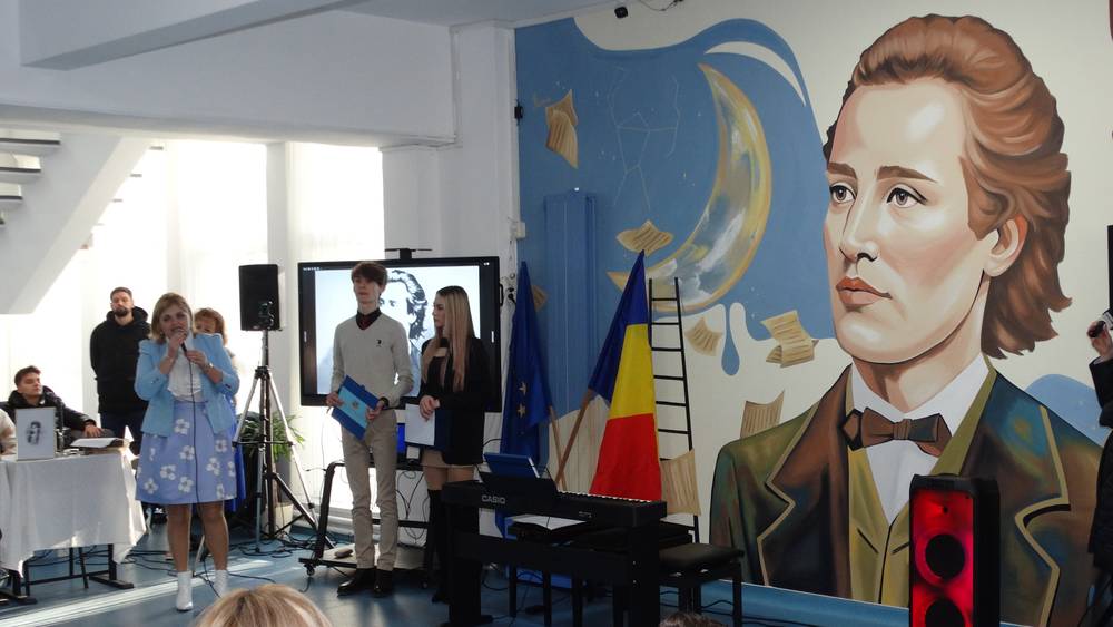 „Este o zi cu triplă însemnătate pentru noi, Ziua Culturii Naționale, Ziua marelui poet Mihai Eminescu și Ziua Colegiului nostru. Se împlinesc 175 de ani de la nașterea acestui geniu al literaturii române, poetul nepereche, a cărui operă continuă să lumineze conștiința noastră colectivă. Colegiul „Mihai Eminescu” nu este doar o școală, ci un loc în care visurile au prins viață, în care munca, dăruirea și pasiunea pentru cunoaștere au clădit caractere și au modelat destine. Numele colegiului evidențiază este o istorie bogată, scrisă de profesori dedicați, care au știut să inspire și să cultive setea de cunoaștere. Generații de elevi care, cu mândrie, au purtat mai departe numele acestui colegiu, au devenit personalități marcante în diverse domenii. Vă invit să reflectăm asupra cuvintelor lui Tudor Arghezi: ”A fi poet național nu este o meserie, ci un destin.” Acesta a fost destinul lui Mihai Eminescu, iar datoria noastră este să îl păstrăm viu în inimile noastre și în cultura noastră.”