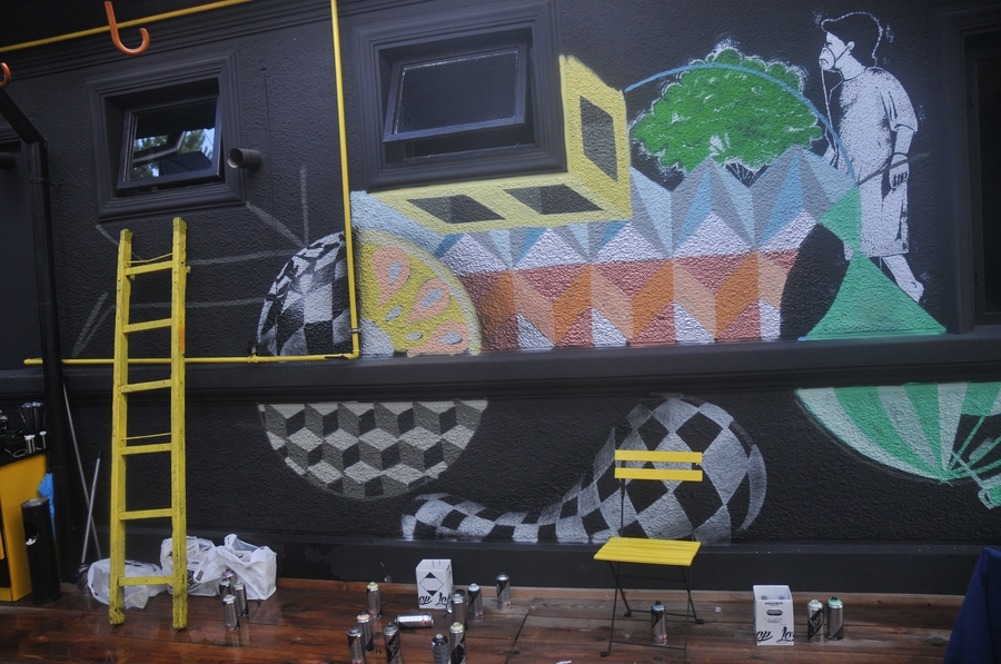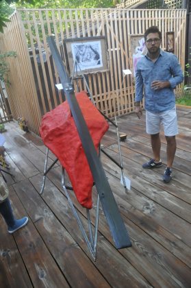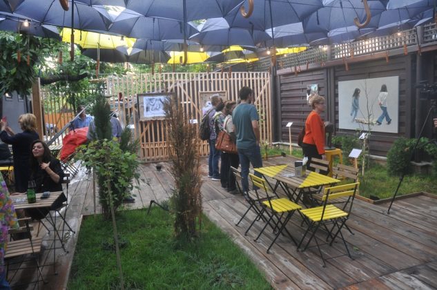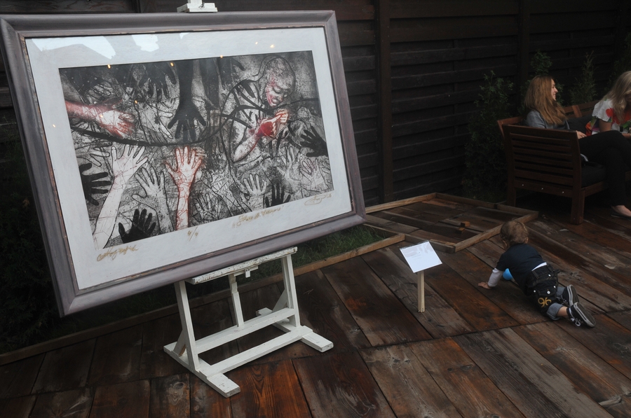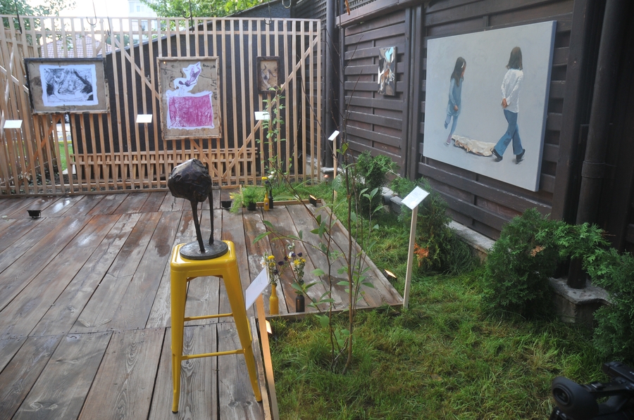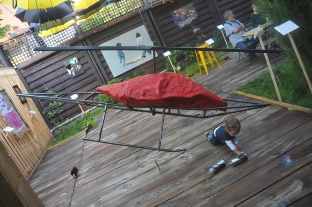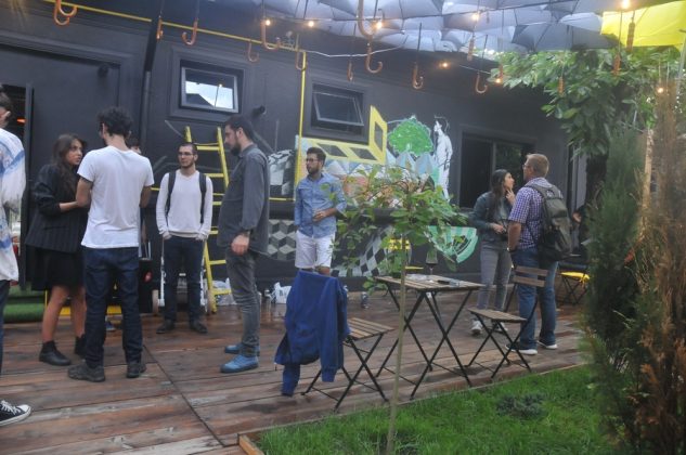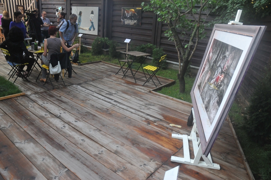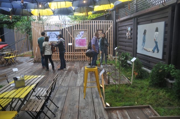 Fără „scenariul” tradiţional (vernisaj, critici de artă, vorbe, vorbe…), pe simezele improvizate în grădina-terasă (şi el un spaţiu nonconformist) au expus veteranul street art-ului Obie Platon (vezi Teatrul de Vară), Dragoş Burlacu, Marius Franţ (Bacău), Krasimir Metodiev (Bulgaria), Ştefan Radu Creţu (Sibiu), uniţi sub acelaşi generic – ledge. „Consumatorii” de seară ai locaţiei au privit, la început curioşi, apoi din ce în ce mai captivaţi, picturile şi sculpturile expuse.