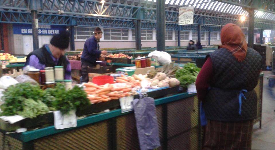 Merele, salatele, ardeii, rosiile si dovleceii pot fi cumparate din hala de lactate, acolo unde pe timp de ger s-au retras mare parte dintre comercianti pentru a-si proteja marfa de inghet.