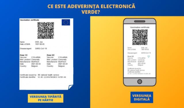 „Comisia Europeană propune crearea unei adeverințe electronice verzi pentru a facilita libera circulație, în condiții de siguranță, în interiorul UE în timpul pandemiei de COVID-19. Adeverința electronică verde va constitui dovada că deținătorul a fost vaccinat împotriva COVID-19, a primit un rezultat negativ la testul de depistare a infecției cu virusul SARS-CoV-2 sau s-a vindecat de COVID-19″, se arată în informarea Comisiei Europene.