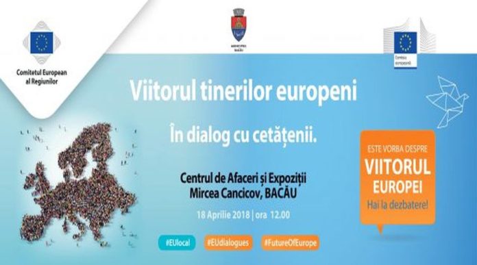 Comitetul European al Regiunilor (CoR), Delegația Națională a României la CoR, Reprezentanța Comisiei Europene în România și platforma CaleaEuropeană.ro organizează, cu sprijinul Primăriei Municipiului Bacău, miercuri, 18 aprilie, dezbaterea, intitulată „Viitorul tinerilor europeni – dialog local privind problematica șomajului în rândul tinerilor și reducerea decalajelor sociale și economice”, ce va avea loc la Centrul de Afaceri și Expoziții ”Mircea Cancicov” din Bacău, cu începere de la ora 12:00.