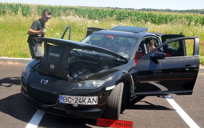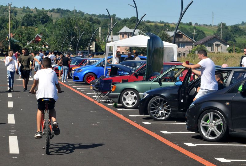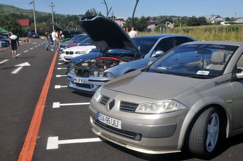 De cum am ajuns în Moineşti, sâmbăta trecută, la ora 14.00, atenţia ne-a fost atrasă de zgomotul maşinilor turate, de agitaţia din marea parcare de la Complexul Turistic „Mario”. Maşini, multe maşini, de toate mărcile, autohtone şi străine. De la bătrâna Dacie, transformată, dichisită, de nu o mai recunoşteai, dacă nu erai atent la sigla iniţială, până la mărci celebre, ieşite de pe porţile firmelor de renume, care au invadat străzile şi autostrăzile din România. Proprietarii fac ultimele retuşuri, ridică capotele, să se vadă mândreţea de motor, lustruiesc jantele, verifică sofisticatul sistem audio. Curioşii se înghesuie să vadă maşinile, cunoscătorii cer informaţii, discută, se minunează.
