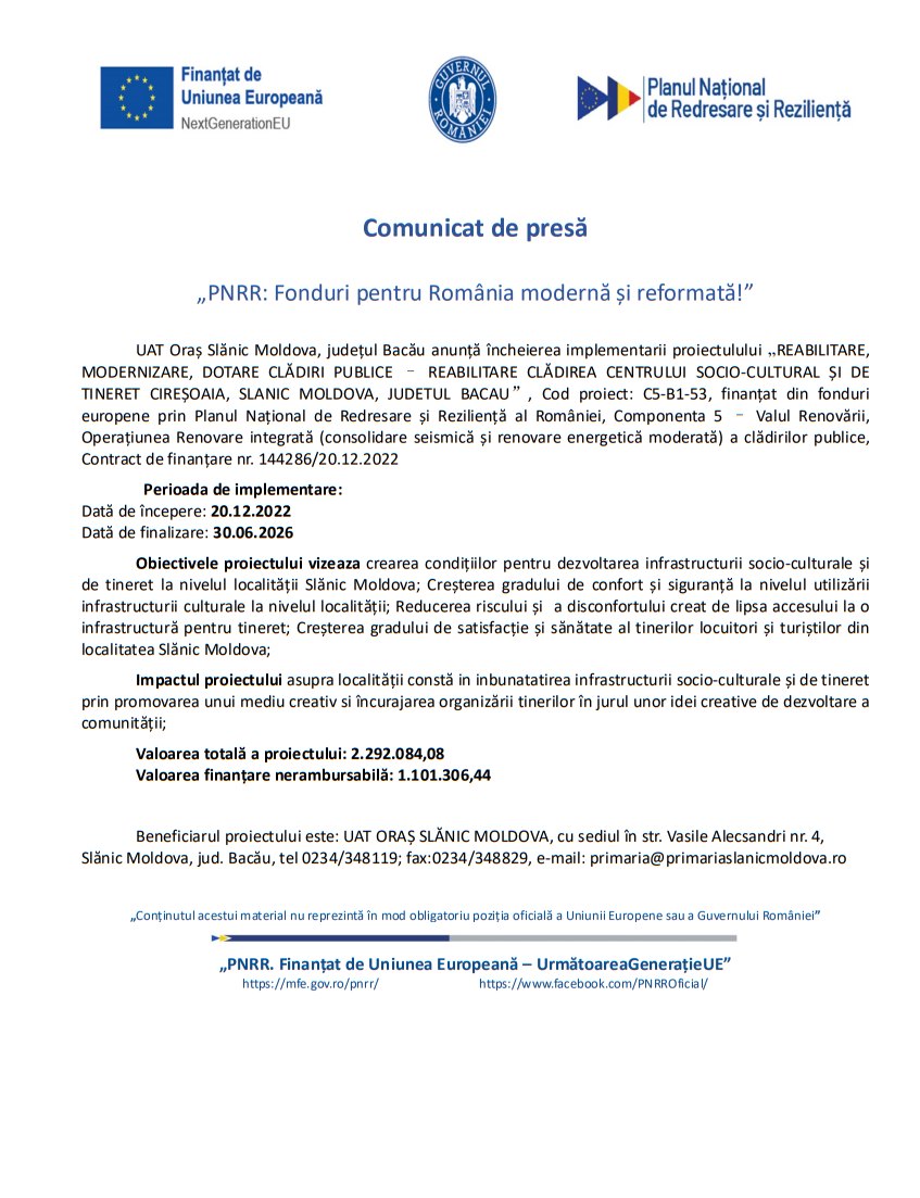 Comunicat de presăComunicat de presă Deșteptarea5 februarie 2026AcțiuneFacebookTwitterWhatsAppTelegramVK AcțiuneFacebookTwitterWhatsAppTelegramVK Umbrărescu aduce tehnologie de vârf la Oțelu Roșu: primul laminor CMT din Europa, pas decisiv spre repornirea combinatuluiAcțiune de verificare a transportatorilor, desfășurată de polițiștii rutieri din BacăuWorkshop-ul „Consilierea în carieră – beneficii și tendințe actuale”, Liceul Teoretic „Henri Coandă”, Bacău Angajații Serviciului de Probațiune Bacău, instruiți de ISU/SMURD în acordarea primului ajutorNoi reguli privind eliberarea actelor de identitate în municipiul Bacău și comunele arondateIntervenție pe Calea Bacăului din orașul Onești!AyDA va prezenta știrile Deșteptarea.ro în format videoAccident la Mărgineni. O persoană a fost dusă la spitalZiua Mondială de Luptă Împotriva CanceruluiSpitalul „Prof. Dr. Eduard Apetrei” Buhuși introduce asistenți virtuali cu inteligență artificială pentru informarea paciențilorAtletism: O nouă ediție a Memorialului Dorin MelinteViceprimarul Leonard Ioan Bulai: Prima atribuire a parcărilor de reședință s-a desfășurat fără conflicte, iar locurile au ajuns pentru toți doritorii