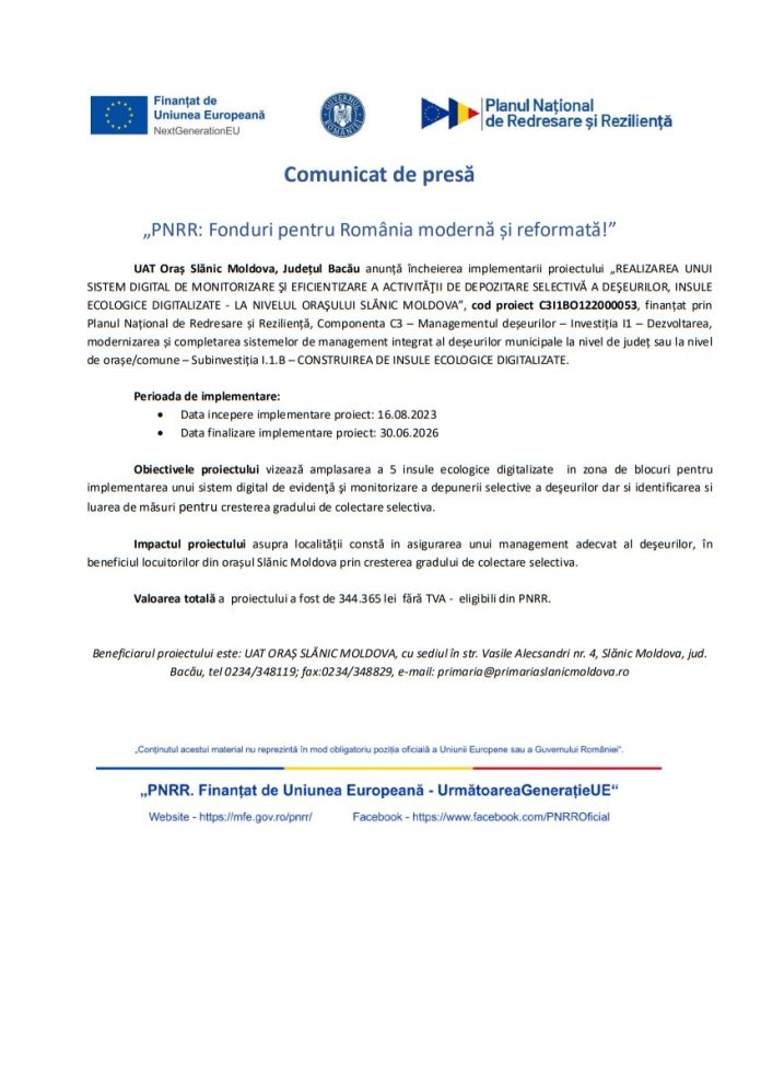 Comunicat de presăComunicat de presă Deșteptarea12 martie 2026AcțiuneFacebookTwitterWhatsAppTelegramVK AcțiuneFacebookTwitterWhatsAppTelegramVK Amenzi de 160.000 de lei pentru groapa de gunoi de pe malul SiretuluiFotbal/ Liga 3: Aerostar- Cetatea Suceava, în uvertura etapei 20Bacău: 70 de intervenții gestionate de pompieri în ultimele 24 de orePilotul de F-16 mort după ce a încercat să salveze un câine va fi înmormântat sâmbătă la AgășStadiul lucrărilor pe Autostrada A7: imagini noi de pe lotul 3 Mircești – PașcaniIncendiu la trei gospodării de pe strada Alba Iulia; Un bărbat care a încercat să salveze copiii a ajuns la spitalDiferite tipuri de recompense la jocurile online „Meșterim și dăruim” Veștile bune se țin lanț în comuna MăguraUltimele modificări la legislația pensiilor: ce trebuie să știe românii care se pensionează în 2026Au început săpăturile pentru sistemul de management al traficului în intersecția URA din BacăuSute de tone de deșeuri, îngropate ilegal într-o arie protejată lângă râul Siret, în Bacău