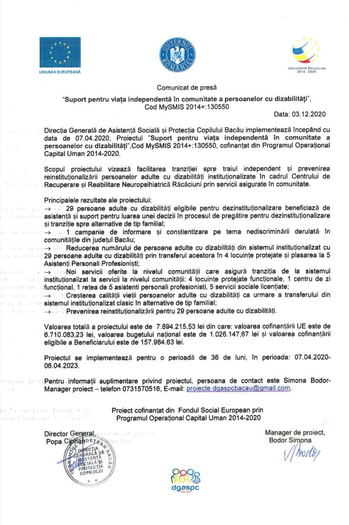 • Comunicat de presă