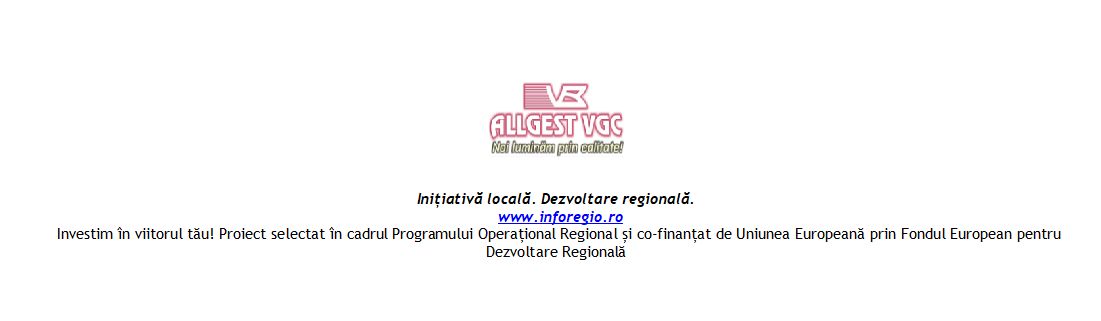 ALLGEST VGC SRL a încheiat un contract de finanţare cu Ministerul Dezvoltării Regionale, Administraţiei Publice si Fondurilor Europene, în calitate de Autoritate de Management pentru Programul Operațional Regional 2014-2020 şi cu Agenția pentru Dezvoltare Regională a Regiunii Nord-Est în calitate de Organism Intermediar pentru Programul Operațional Regional la nivelul regiunii Nord Est.