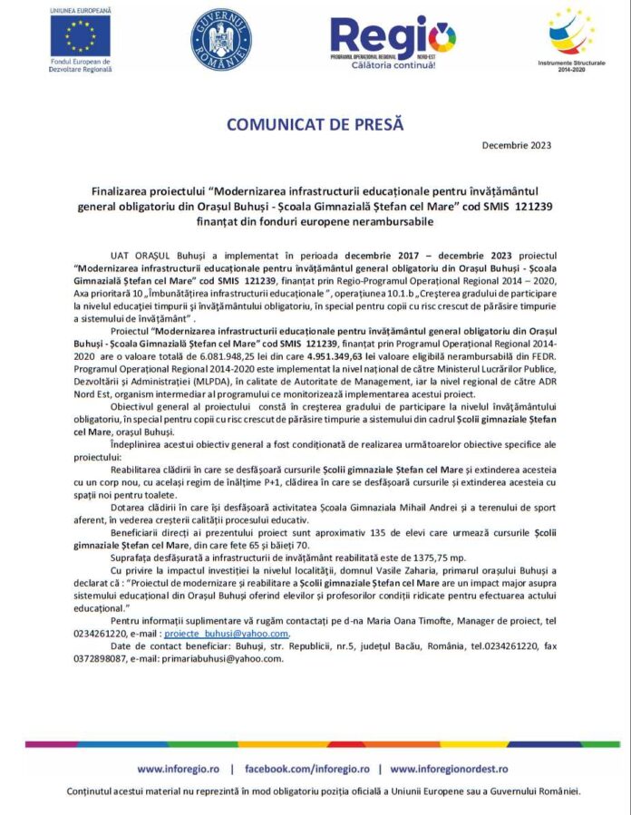 Comunicat de presăComunicat de presă Deșteptarea7 decembrie 2023AcțiuneFacebookTwitterWhatsAppTelegramVK AcțiuneFacebookTwitterWhatsAppTelegramVK Hramul Sfintei Varvara și sinaxa preoților din Protopopiatul Onești, celebrate la 240 de metri adâncime în Salina Târgu OcnaȘezătoarea de la Măgura, o punte între generații și tradițiiPercheziții și 12 autovehicule puse sub sechestru într-un dosar de evaziune fiscală de 150.000 de leiJandarmii băcăuani au oferit daruri de Moș Nicolae unor copii din StănișestiGala Ecosistemului Antreprenorial al Universității «Vasile Alecsandri»Un mister din 1973… în Steagul roșuFotbalul băcăuan la 360 de gradeDepopularea continuă dar septembrie aduce o surpriză demograficăCum să ai grijă corect de parfumul tăuHandbal juvenil: Prima ediție a Memorialului „Marcel Păunică”Polițiștii băcăuani, în sprijinul comunității: recomandări pentru sărbători în siguranțăIntervenție laparoscopică reușită pentru tratarea infertilității cauzate de varicocel