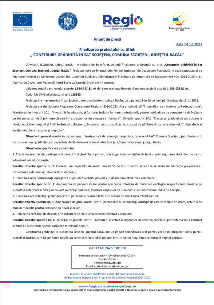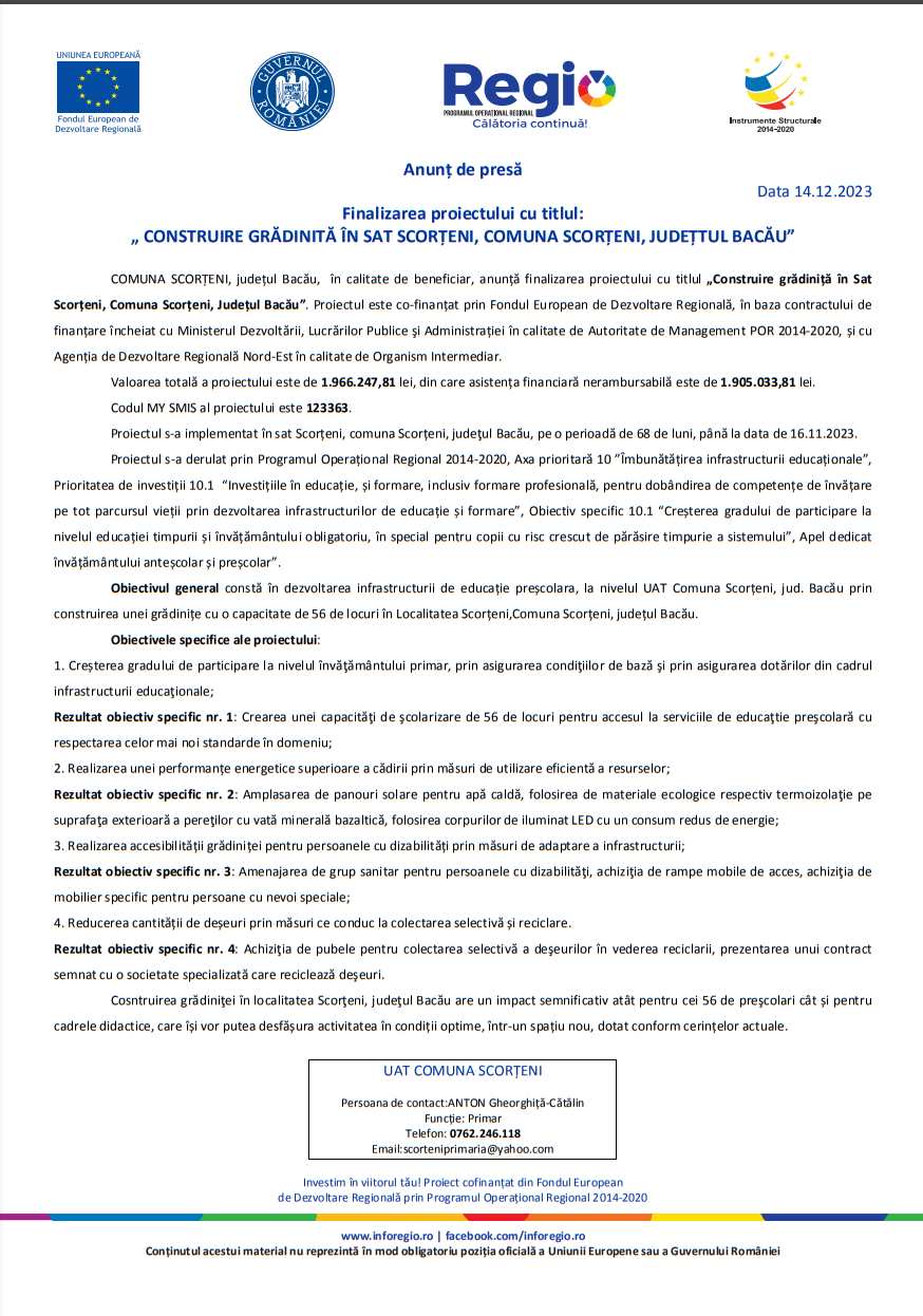 Comunicat de presăComunicat de presă Deșteptarea14 decembrie 2023AcțiuneFacebookTwitterWhatsAppTelegramVK AcțiuneFacebookTwitterWhatsAppTelegramVK Hramul Sfintei Varvara și sinaxa preoților din Protopopiatul Onești, celebrate la 240 de metri adâncime în Salina Târgu OcnaȘezătoarea de la Măgura, o punte între generații și tradițiiPercheziții și 12 autovehicule puse sub sechestru într-un dosar de evaziune fiscală de 150.000 de leiJandarmii băcăuani au oferit daruri de Moș Nicolae unor copii din StănișestiGala Ecosistemului Antreprenorial al Universității «Vasile Alecsandri»Un mister din 1973… în Steagul roșuFotbalul băcăuan la 360 de gradeDepopularea continuă dar septembrie aduce o surpriză demograficăCum să ai grijă corect de parfumul tăuHandbal juvenil: Prima ediție a Memorialului „Marcel Păunică”Polițiștii băcăuani, în sprijinul comunității: recomandări pentru sărbători în siguranțăIntervenție laparoscopică reușită pentru tratarea infertilității cauzate de varicocel