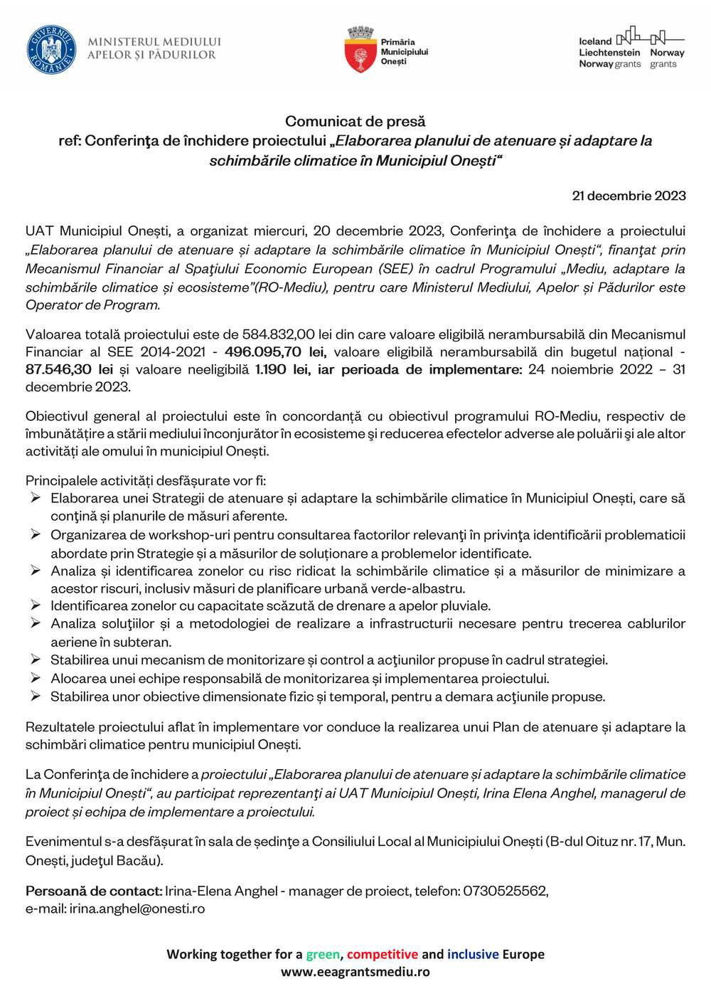 Comunicat de presăComunicat de presă Deșteptarea21 decembrie 2023AcțiuneFacebookTwitterWhatsAppTelegramVK AcțiuneFacebookTwitterWhatsAppTelegramVK Hramul Sfintei Varvara și sinaxa preoților din Protopopiatul Onești, celebrate la 240 de metri adâncime în Salina Târgu OcnaȘezătoarea de la Măgura, o punte între generații și tradițiiPercheziții și 12 autovehicule puse sub sechestru într-un dosar de evaziune fiscală de 150.000 de leiJandarmii băcăuani au oferit daruri de Moș Nicolae unor copii din StănișestiGala Ecosistemului Antreprenorial al Universității «Vasile Alecsandri»Un mister din 1973… în Steagul roșuFotbalul băcăuan la 360 de gradeDepopularea continuă dar septembrie aduce o surpriză demograficăCum să ai grijă corect de parfumul tăuHandbal juvenil: Prima ediție a Memorialului „Marcel Păunică”Polițiștii băcăuani, în sprijinul comunității: recomandări pentru sărbători în siguranțăIntervenție laparoscopică reușită pentru tratarea infertilității cauzate de varicocel