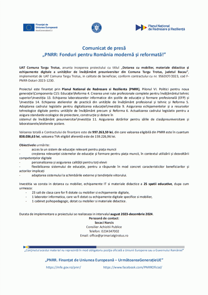 Comunicat de presăComunicat de presă Deșteptarea26 aprilie 2024AcțiuneFacebookTwitterWhatsAppTelegramVK AcțiuneFacebookTwitterWhatsAppTelegramVK Hramul Sfintei Varvara și sinaxa preoților din Protopopiatul Onești, celebrate la 240 de metri adâncime în Salina Târgu OcnaȘezătoarea de la Măgura, o punte între generații și tradițiiPercheziții și 12 autovehicule puse sub sechestru într-un dosar de evaziune fiscală de 150.000 de leiJandarmii băcăuani au oferit daruri de Moș Nicolae unor copii din StănișestiGala Ecosistemului Antreprenorial al Universității «Vasile Alecsandri»Un mister din 1973… în Steagul roșuFotbalul băcăuan la 360 de gradeDepopularea continuă dar septembrie aduce o surpriză demograficăCum să ai grijă corect de parfumul tăuHandbal juvenil: Prima ediție a Memorialului „Marcel Păunică”Polițiștii băcăuani, în sprijinul comunității: recomandări pentru sărbători în siguranțăIntervenție laparoscopică reușită pentru tratarea infertilității cauzate de varicocel