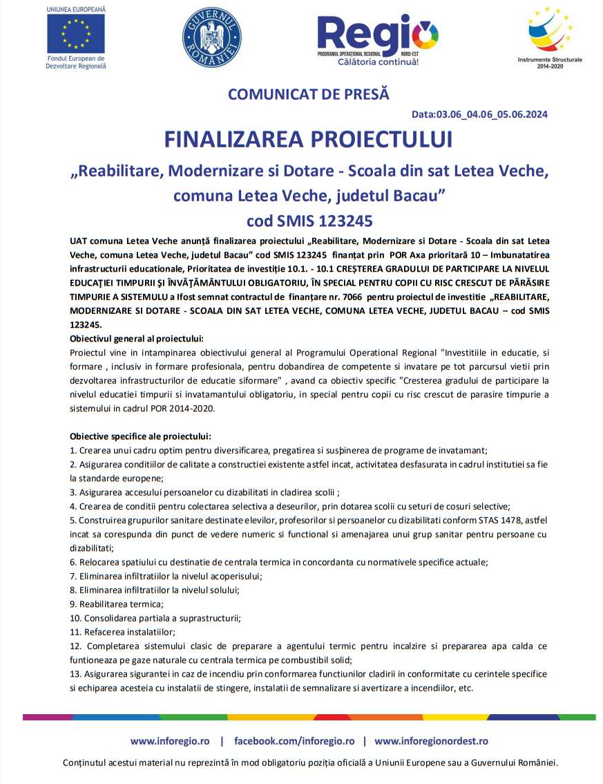 În perioada noiembrie 2025 – octombrie 2026 se va...