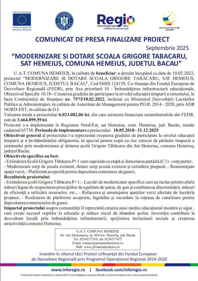 Comunicat de presăComunicat de presă Deșteptarea29 septembrie 2025AcțiuneFacebookTwitterWhatsAppTelegramVK AcțiuneFacebookTwitterWhatsAppTelegramVK Intervenție laparoscopică reușită pentru tratarea infertilității cauzate de varicocel40 de kilograme de articole pirotehnice, deținute ilegal, descoperite de polițiștii băcăuaniCând se organizează Alaiul Datinilor și Obiceiurilor de Iarnă în BacăuTrei cazuri noi de gripă și peste 1.500 de infecții respiratorii în județul BacăuConcursul Național Interdisciplinar „Vrănceanu – Procopiu” Bacău, ediția a XXIV-a, 2025Cum transformă perdelele atmosfera din orice locuință„Once Upon a Ball – Povestea Bobocilor” de la Liceul „Borcea” BuhușiPrimarul Lucian-Daniel Stanciu-Viziteu: „Vom continua și anul viitor dezvoltarea municipiului Bacău prin investiții”Sărbătoare în inima Bacăului: Hramul „Sfântul Nicolae” și 20 de ani de la sfințirea bisericii „Sfinții Petru și Paul”O lege mută elevii de clasa a VIII-a exclusiv în programul de dimineațăWDSF Bacău Dance Open 2025 – Un spectacol de pasiune și eleganță pe ringul de dansInspectoratul de Jandarmi Județean „Ștefan cel Mare” Bacău, distins cu Placheta de Onoare a Ministerului Afacerilor Interne