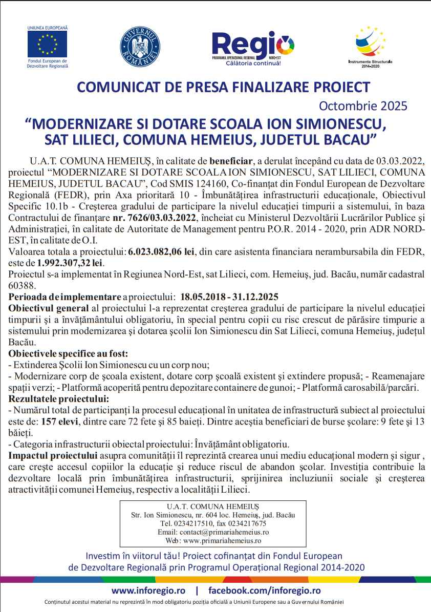 Comunicat de presăComunicat de presă Deșteptarea3 octombrie 2025AcțiuneFacebookTwitterWhatsAppTelegramVK AcțiuneFacebookTwitterWhatsAppTelegramVK Intervenție laparoscopică reușită pentru tratarea infertilității cauzate de varicocel40 de kilograme de articole pirotehnice, deținute ilegal, descoperite de polițiștii băcăuaniCând se organizează Alaiul Datinilor și Obiceiurilor de Iarnă în BacăuTrei cazuri noi de gripă și peste 1.500 de infecții respiratorii în județul BacăuConcursul Național Interdisciplinar „Vrănceanu – Procopiu” Bacău, ediția a XXIV-a, 2025Cum transformă perdelele atmosfera din orice locuință„Once Upon a Ball – Povestea Bobocilor” de la Liceul „Borcea” BuhușiPrimarul Lucian-Daniel Stanciu-Viziteu: „Vom continua și anul viitor dezvoltarea municipiului Bacău prin investiții”Sărbătoare în inima Bacăului: Hramul „Sfântul Nicolae” și 20 de ani de la sfințirea bisericii „Sfinții Petru și Paul”O lege mută elevii de clasa a VIII-a exclusiv în programul de dimineațăWDSF Bacău Dance Open 2025 – Un spectacol de pasiune și eleganță pe ringul de dansInspectoratul de Jandarmi Județean „Ștefan cel Mare” Bacău, distins cu Placheta de Onoare a Ministerului Afacerilor Interne