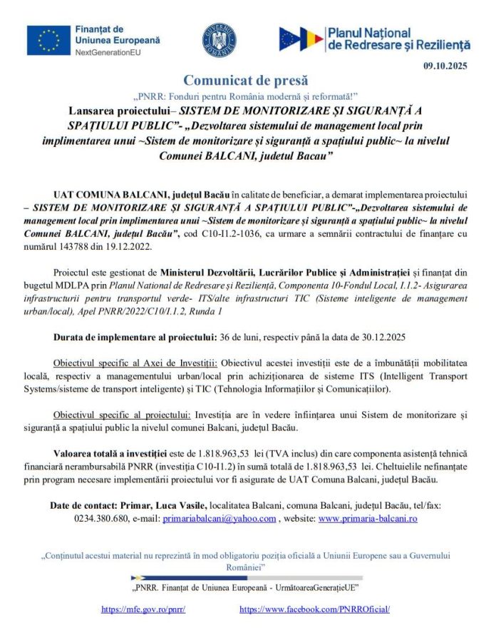 Comunicat de presăComunicat de presă Deșteptarea9 octombrie 2025AcțiuneFacebookTwitterWhatsAppTelegramVK AcțiuneFacebookTwitterWhatsAppTelegramVK Intervenție laparoscopică reușită pentru tratarea infertilității cauzate de varicocel40 de kilograme de articole pirotehnice, deținute ilegal, descoperite de polițiștii băcăuaniCând se organizează Alaiul Datinilor și Obiceiurilor de Iarnă în BacăuTrei cazuri noi de gripă și peste 1.500 de infecții respiratorii în județul BacăuConcursul Național Interdisciplinar „Vrănceanu – Procopiu” Bacău, ediția a XXIV-a, 2025Cum transformă perdelele atmosfera din orice locuință„Once Upon a Ball – Povestea Bobocilor” de la Liceul „Borcea” BuhușiPrimarul Lucian-Daniel Stanciu-Viziteu: „Vom continua și anul viitor dezvoltarea municipiului Bacău prin investiții”Sărbătoare în inima Bacăului: Hramul „Sfântul Nicolae” și 20 de ani de la sfințirea bisericii „Sfinții Petru și Paul”O lege mută elevii de clasa a VIII-a exclusiv în programul de dimineațăWDSF Bacău Dance Open 2025 – Un spectacol de pasiune și eleganță pe ringul de dansInspectoratul de Jandarmi Județean „Ștefan cel Mare” Bacău, distins cu Placheta de Onoare a Ministerului Afacerilor Interne
