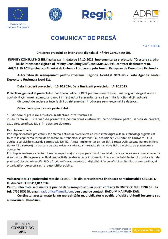 Comunicat de presăComunicat de presă Deșteptarea14 octombrie 2025AcțiuneFacebookTwitterWhatsAppTelegramVK AcțiuneFacebookTwitterWhatsAppTelegramVK Intervenție laparoscopică reușită pentru tratarea infertilității cauzate de varicocel40 de kilograme de articole pirotehnice, deținute ilegal, descoperite de polițiștii băcăuaniCând se organizează Alaiul Datinilor și Obiceiurilor de Iarnă în BacăuTrei cazuri noi de gripă și peste 1.500 de infecții respiratorii în județul BacăuConcursul Național Interdisciplinar „Vrănceanu – Procopiu” Bacău, ediția a XXIV-a, 2025Cum transformă perdelele atmosfera din orice locuință„Once Upon a Ball – Povestea Bobocilor” de la Liceul „Borcea” BuhușiPrimarul Lucian-Daniel Stanciu-Viziteu: „Vom continua și anul viitor dezvoltarea municipiului Bacău prin investiții”Sărbătoare în inima Bacăului: Hramul „Sfântul Nicolae” și 20 de ani de la sfințirea bisericii „Sfinții Petru și Paul”O lege mută elevii de clasa a VIII-a exclusiv în programul de dimineațăWDSF Bacău Dance Open 2025 – Un spectacol de pasiune și eleganță pe ringul de dansInspectoratul de Jandarmi Județean „Ștefan cel Mare” Bacău, distins cu Placheta de Onoare a Ministerului Afacerilor Interne