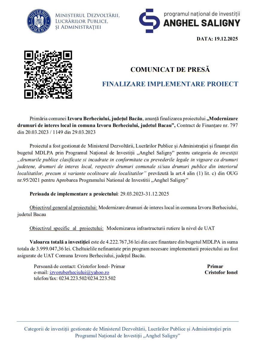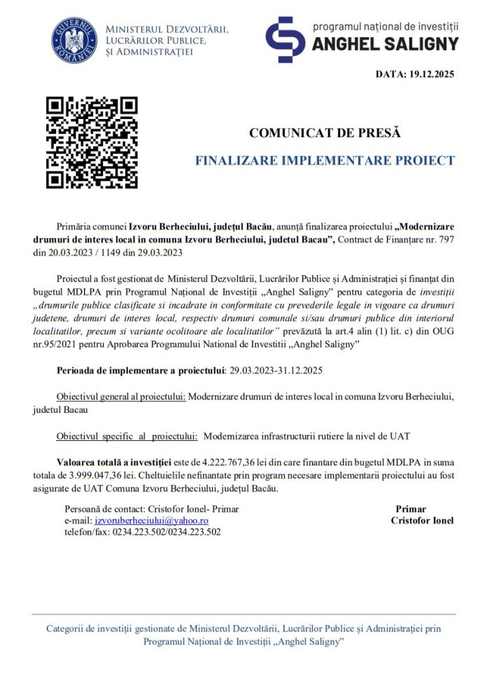 Comunicat de presăComunicat de presă Deșteptarea19 decembrie 2025AcțiuneFacebookTwitterWhatsAppTelegramVK AcțiuneFacebookTwitterWhatsAppTelegramVK Legea nr. 239/2025 introduce reguli noi privind capitalul social, dividendele și împrumuturile către persoane afiliateSanta Cross 2025Concertul Corului „Flores Amicitiae” – o seară a bucuriei și a spiritului autentic al Crăciunului Împreună de CrăciunCreștere a cazurilor de afecțiuni respiratorii și gripă în județul Bacău. DSP face apel la populație pentru prevențieA doua ediție a Târgului de Turism Bacău: 24–25 ianuarie 2026 – Aeroportul Internațional „George Enescu” BacăuAccident între două autoutilitare la Grigoreni: un șofer a murit„Crăciunul aduce zâmbete” – un proiect care a adus bucurie copiilor din Săucești„Crăciunul sufletelor bune” – o seară a bucuriei, solidarității și speranței, la Teatrul Municipal „Bacovia”Cu ce își omoară românii timpul în zilele libere?Un Crăciun de neuitat pentru copiii cu nevoi speciale: ”Surprize de Crăciun” – O Sărbătoare a Iubirii și a Speranței – Ediția a II-aExercițiu de evacuare desfășurat la Spitalul „Prof. Dr. Eduard Apetrei” Buhuși