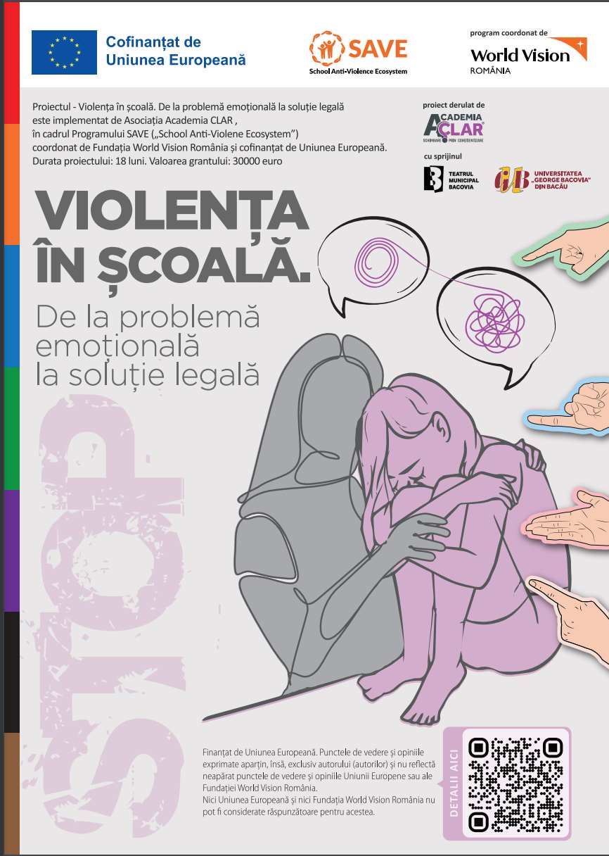 Începând cu data de 14 februarie 2025, Asociația Academia Clar din Bacău derulează proiectul „Violența în școală. De la problema emoțională la soluție legală”, derulat în cadrul Programului SAVE („School Anti-Violence Ecosystem”), finanțat de Comisia Europeană prin Programul CERV-2023-DAPHNE și administrat de Fundația World Vision România. Proiectul se derulează pe o perioadă de 18 luni, în perioada 14 februarie 2025 – 14 august 2026 cu un buget de 30000 EURO.