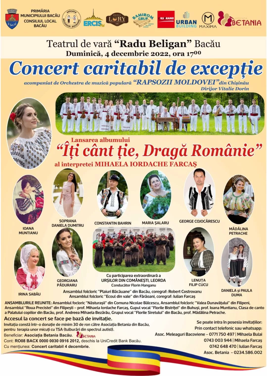 Un Concert de excepție acompaniat de Orchestra Națională de muzică populară „Rapsozii Moldovei” din Republica Moldovei, cu colinde, datini și obiceiuri si lansarea albumului de muzica populară „Îți cânt ție, Dragă Românie” al interpretei Mihaela Iordache Farcaș.